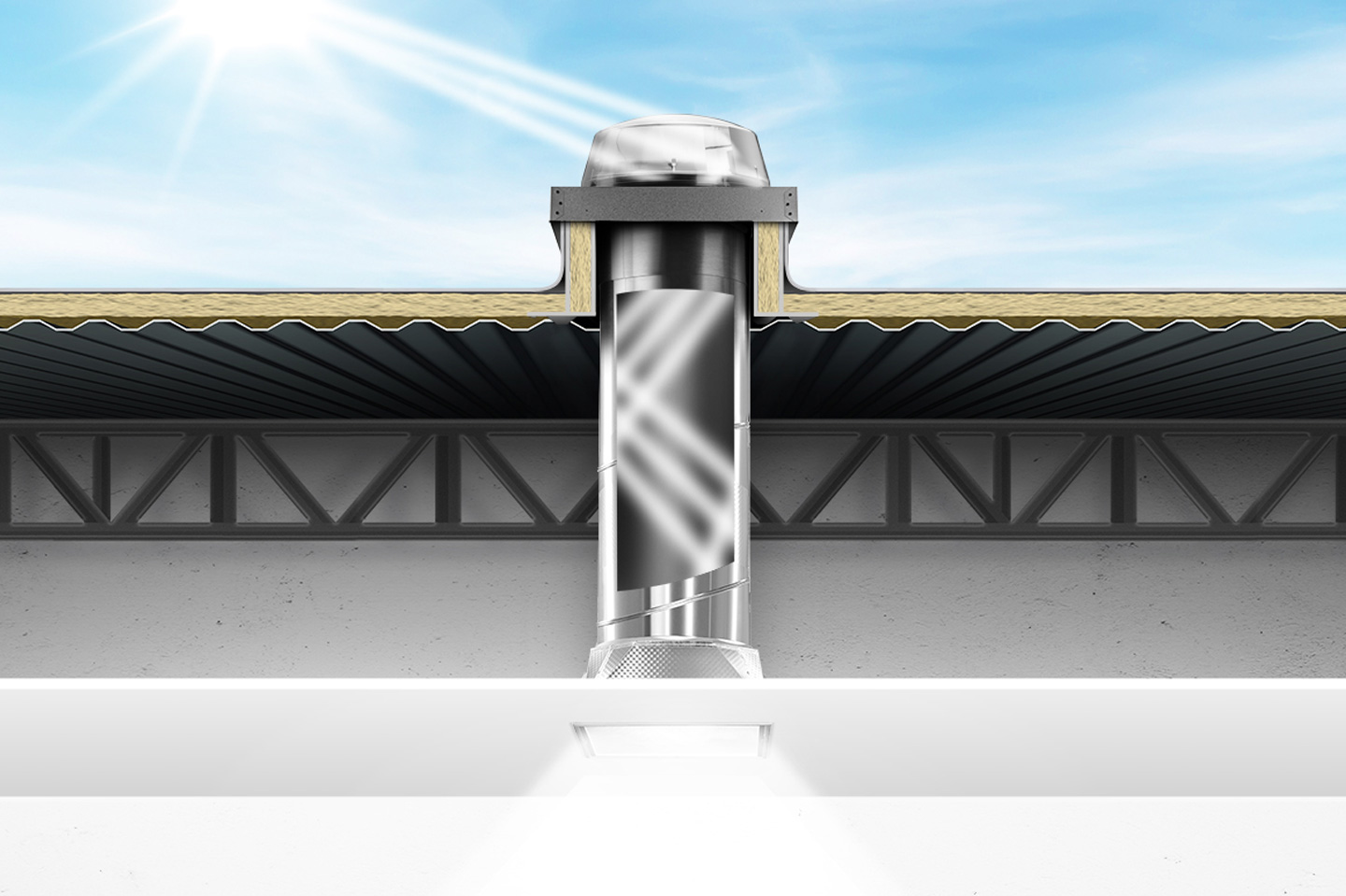 明亮系列提供兩種型號的導光管(160 DS 和 290 DS 型),其導光管直徑分別為10英寸和14英寸,長度最長可達30英尺,可適配不同應用場景及空間尺寸,為室內引入自然采光。