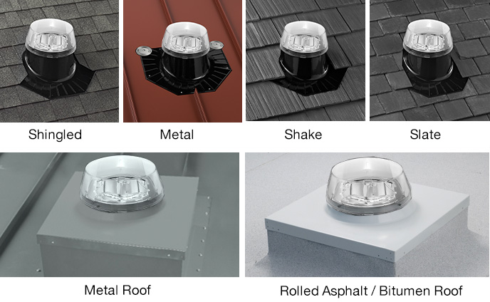 明亮系列提供防漏設計,可將穹頂安裝于各類屋頂之上,包括凸起式屋面蓋板以及坡屋頂和非坡屋頂的泛水板。